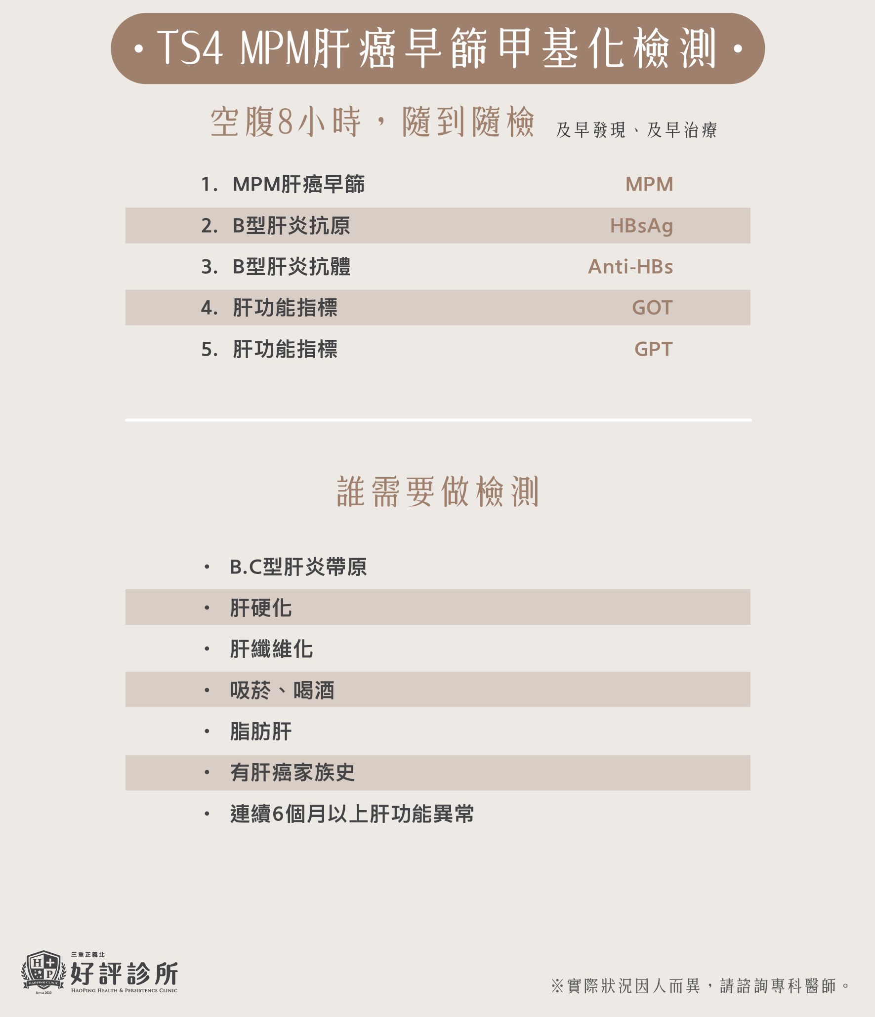 - 有脂肪肝、長期酗酒、吸菸習慣者