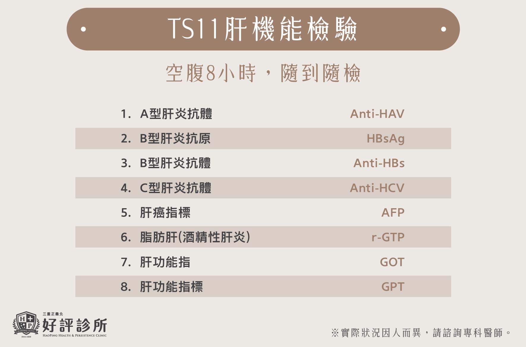 - 肝癌初步篩檢(建議加驗):AFP(胎兒蛋白),為肝細胞癌的標誌物之一