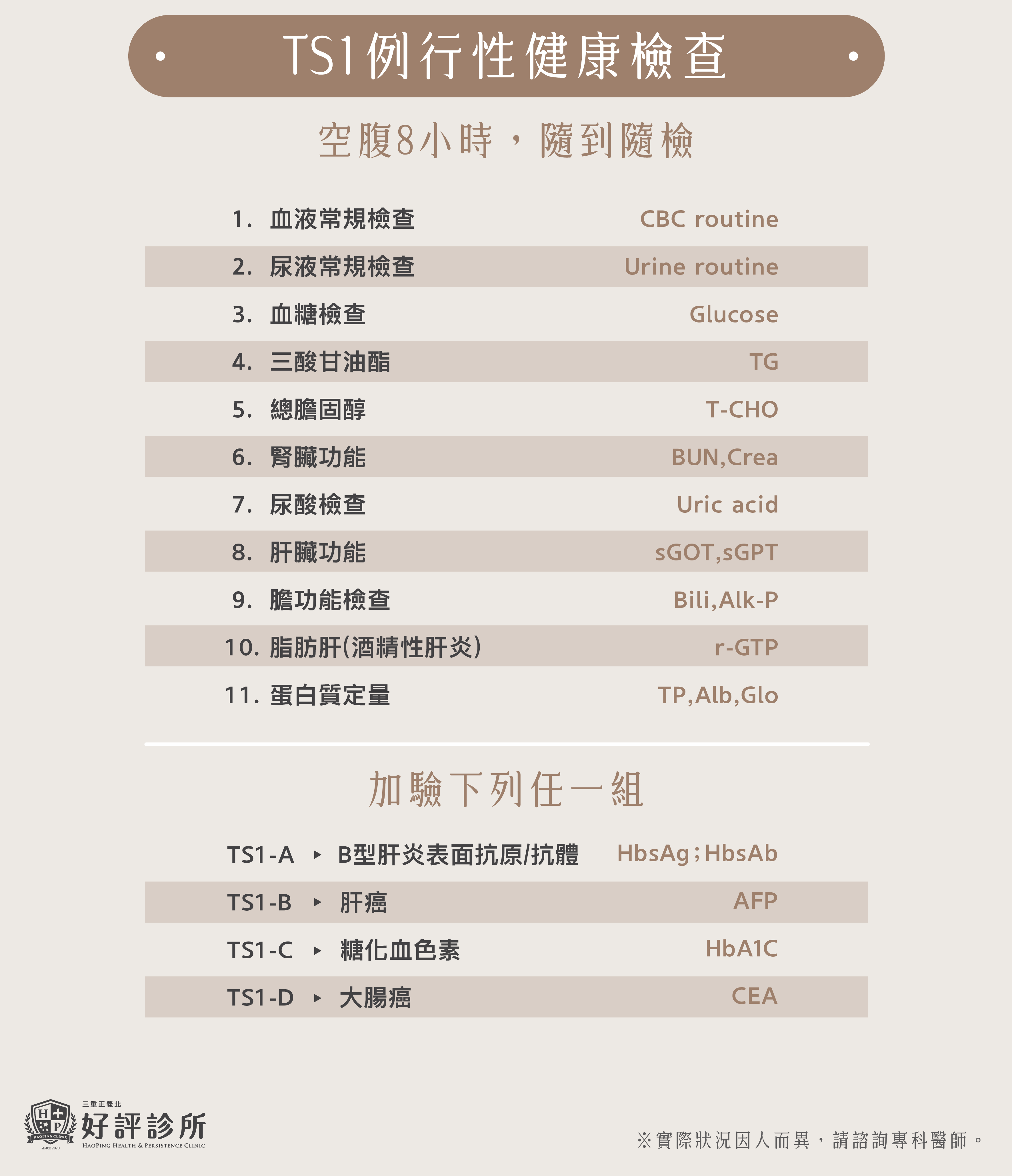 TS1 例行性檢康檢查