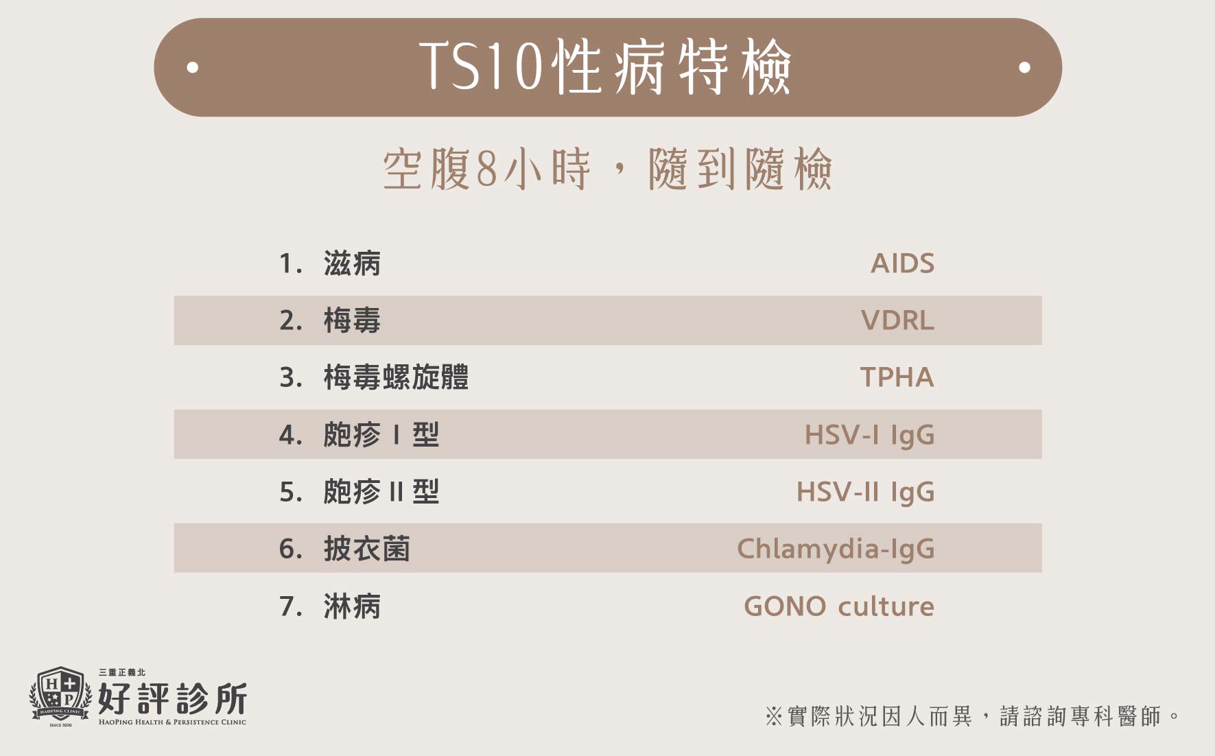 - 淋病篩檢(GONO culture):以細菌培養方式檢測是否感染淋病