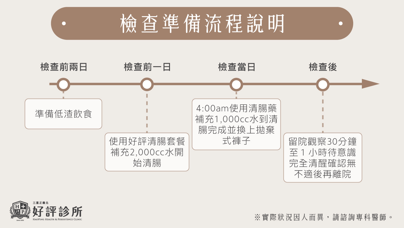 2. 檢查前一日:清腸準備,使用好評診所清腸套餐
