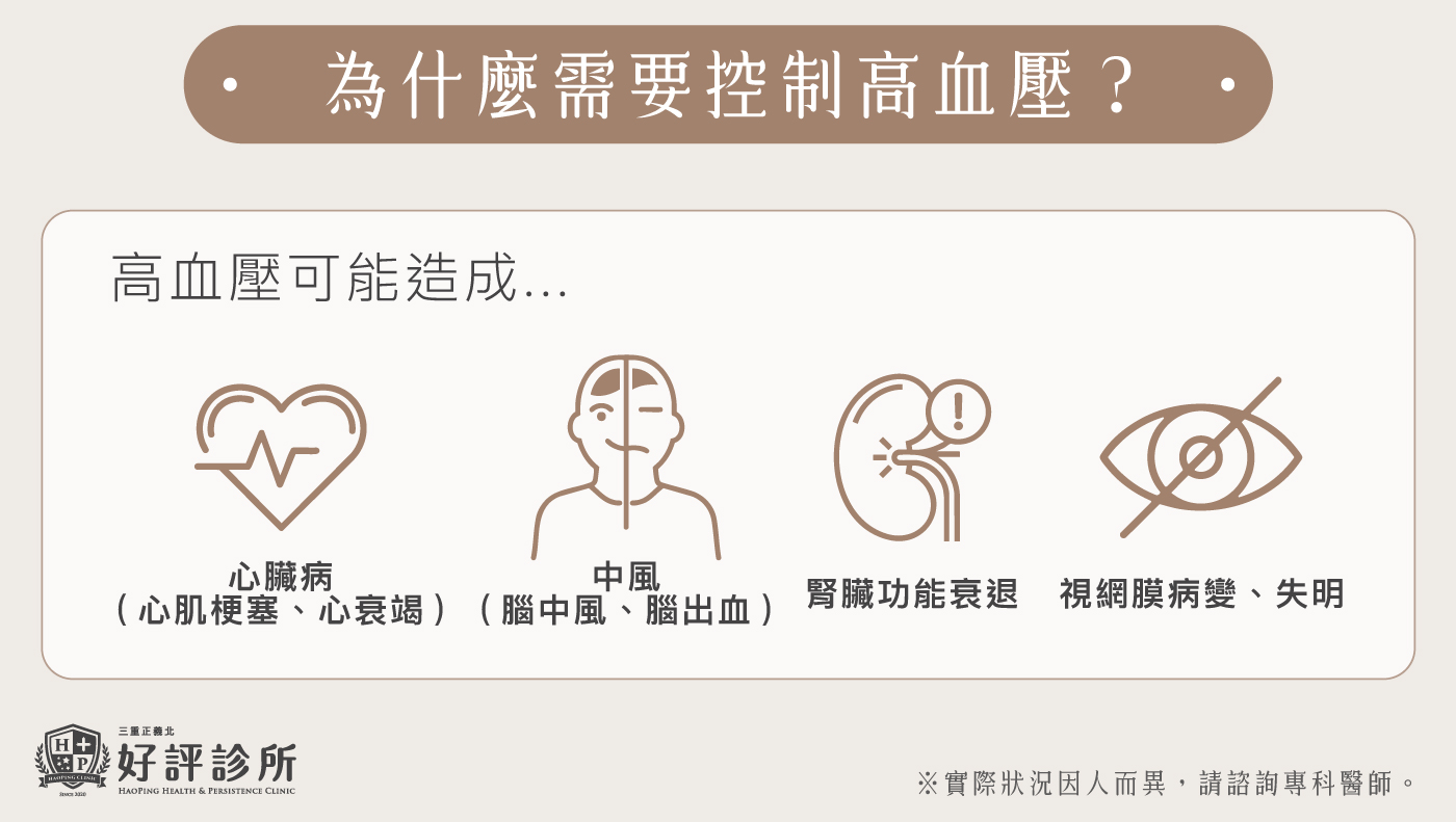 控制血壓有助延緩併發症,延長壽命、提高生活品質。